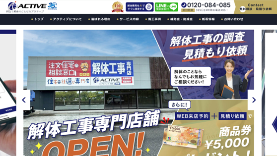 年間1000件以上の施工実績を誇るので、安心して任せられるでしょう。リフォームに伴う内装解体も実施しており、24時間対応可能なため急ぎの解体工事にもおすすめです。なお本拠店は広島ですが、愛媛県での解体工事も引き受けてもらえます。