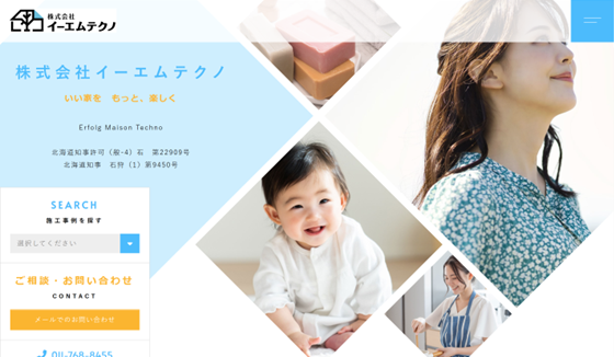 家族構成の変化に伴う間取り変更や断熱改修など暮らしの悩みに関するプランが用意されており、理想の住まいづくりを徹底サポート。札幌市中央区にはショールームもあり、実際の住宅設備や壁紙などを見学できます。