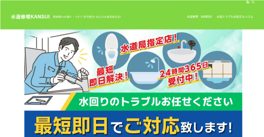 千葉県・東京都・埼玉県・神奈川県に各拠点を構える株式会社 KANSUI。水道局指定工事店として、30年以上の経験を持つスタッフが水回りのリフォームを中心に手掛ける会社です。地域に根ざした水回りの専門業者として、トイレの詰まりや水漏れ、排水管のトラブルなど、緊急の依頼にも迅速に対応しています。