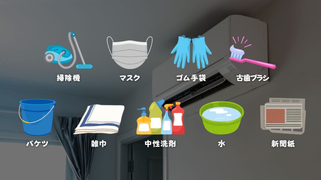 ホコリや水滴が床に垂れるため、エアコンの下に新聞紙やビニールシートを敷き保護してから始めましょう。