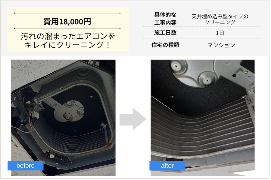 エアコンクリーニングによる種類別の特徴や、部分的なリフォームなどでの費用相場を紹介しましたが、ここではゼヒトモのプロによる「エアコンクリーニングの施工事例」を費用別でまとめています。