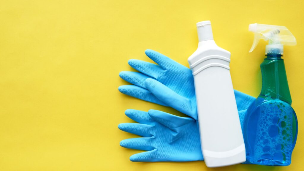 壁の高い位置にクリーナーを塗布するときに、薬剤が目や手、服にかかる恐れがあるので、作業着や作業手袋・ゴーグルなどを着用しておくと安全です。