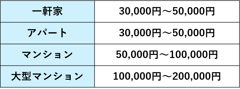 基本的には面積が大きくなるほど、料金は高くなるため、「一軒家」と「大型マンション」では相場に大きな違いがあります。