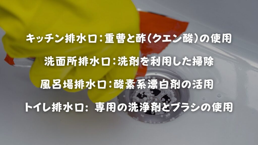 トイレ排水口: 専用の洗浄剤とブラシの使用