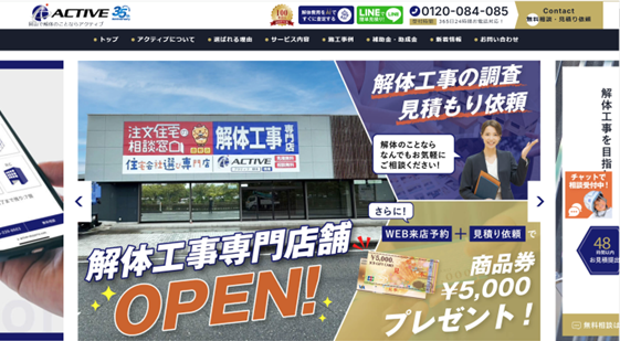解体業として約10年以上の経験を誇る事業者です。屋根工事から事業をスタートし、現在ではリフォーム全般を完全自社施工で請け負っています。