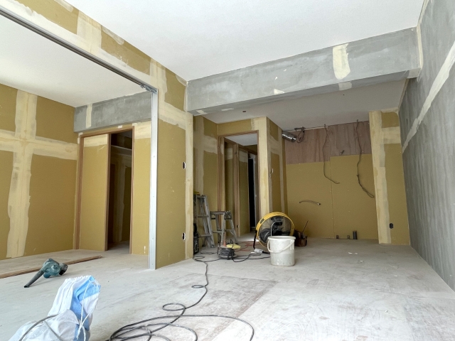 壁の内側に防音材を設置する防音工事は、壁の間に吸音性や遮音性に優れた防音材を挟んで対策を図ります。隣人の生活音や自分たちの部屋の音漏れを防ぎたい場合におすすめの施工です。