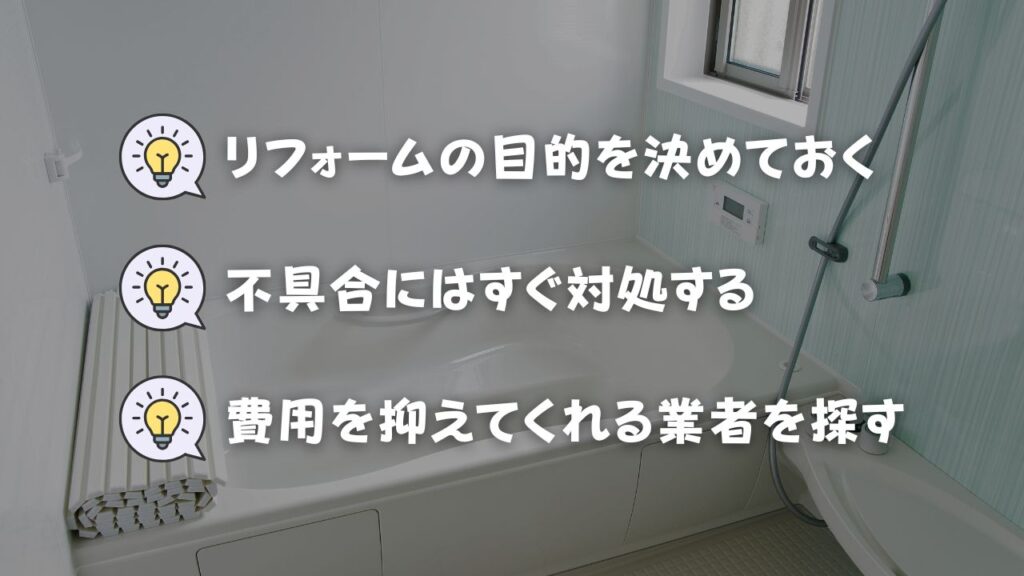 お風呂リフォームの費用は予算をオーバーせずとも十分行う事ができます。少しでもコストを抑えるためのコツを抑えておきましょう。