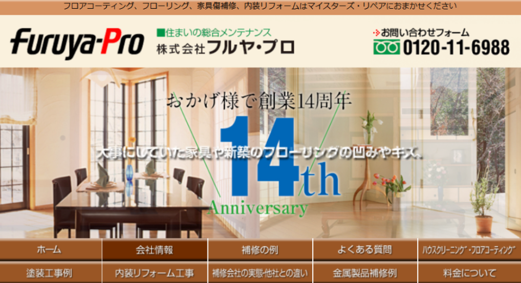 株式会社フルヤ・プロは、東京都立川市を拠点に、住宅の補修工事をメインに手がける事業者です。そのほか、ドア・引き戸のリフォームやクロス・床の張り替えなどの内装工事にも対応してくれます。