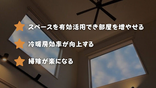 また、吹き抜けがあると1階で使用している冷暖房の効率が悪くなってしまいますが、吹き抜けを埋めれば解消します。さらに、吹き抜けをなくして床ができることで、掃除が楽になることもメリットです。