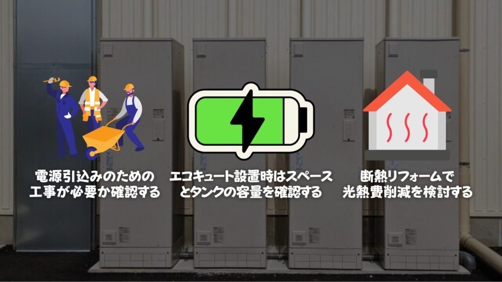 - エコキュート設置時はスペースとタンクの容量を確認する
