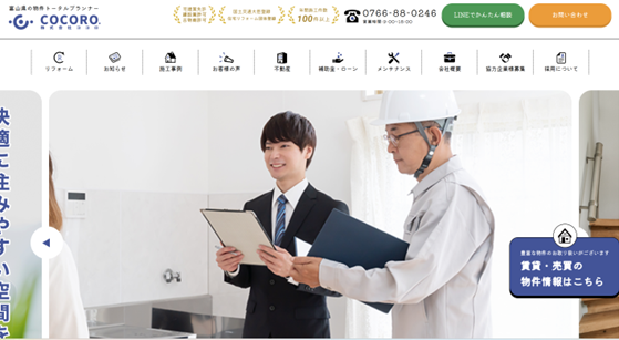 富山市に拠点を置く事業者で、担当の建築士が提案から引き渡しまで一気通貫でサポートします。1級建築士・インテリアコーディネーター・色彩コーディネーターが在籍しており、満足度の高いリフォームを実現。