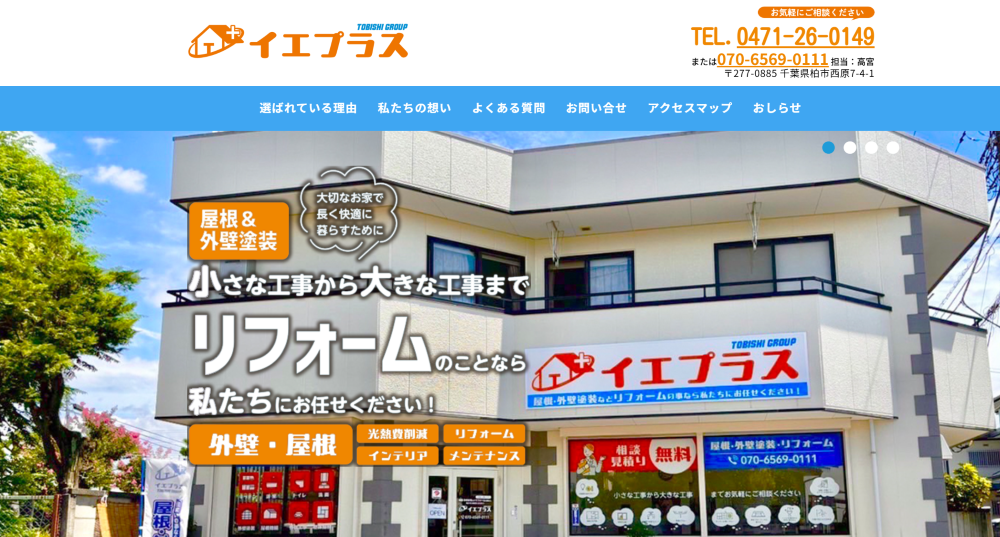 埼玉県加須市に拠点を置き、内装工事や外装工事、外構・エクステリア工事など幅広いリフォーム工事を手掛ける事業者です。中でも、「新・外貼り遮熱工法」といわれる技術を用いて、夏は涼しく冬は暖かい室内空間へリフォームすることを得意としています。