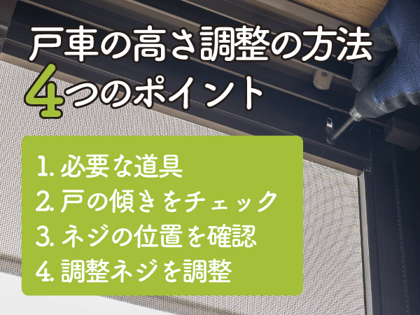 ここでは、戸車の高さを調節する方法として、以下の4つにポイントを分けて解説します。